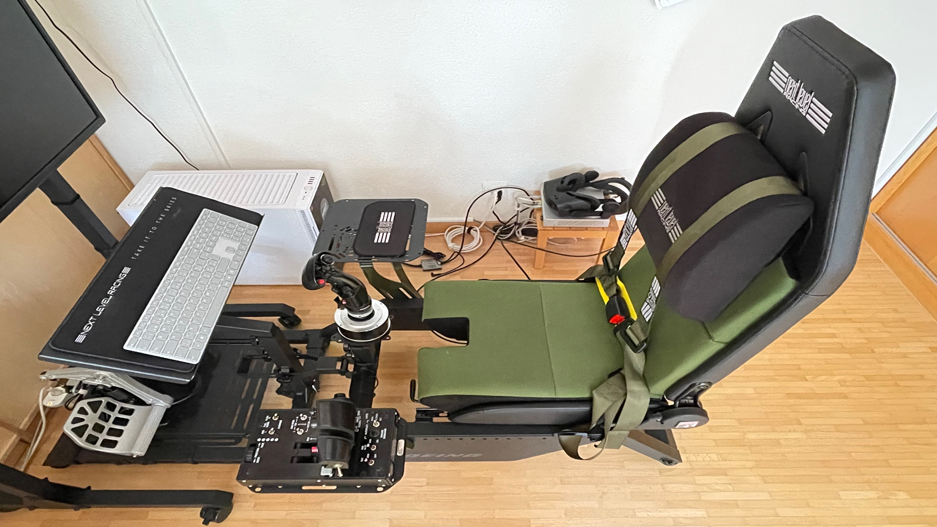 Nach dem Zusammenbau war ich beeindruckt von der Qualität des Sitzes. Das Material fühlte sich hochwertig an und die Verarbeitung war solide. Der Sitz war stabil und wackelte nicht, wenn ich mich hinsetzte oder mich während des Spielens bewegte. Die Verstellmöglichkeiten für Sitzhöhe, Neigungswinkel und Abstand zum Joystick waren vielseitig und ermöglichten es mir, den Sitz nach meinen Bedürfnissen anzupassen. Eine weitere Ausbaustufe wäre für mich dann noch eine Heli-Collective Steuerung.